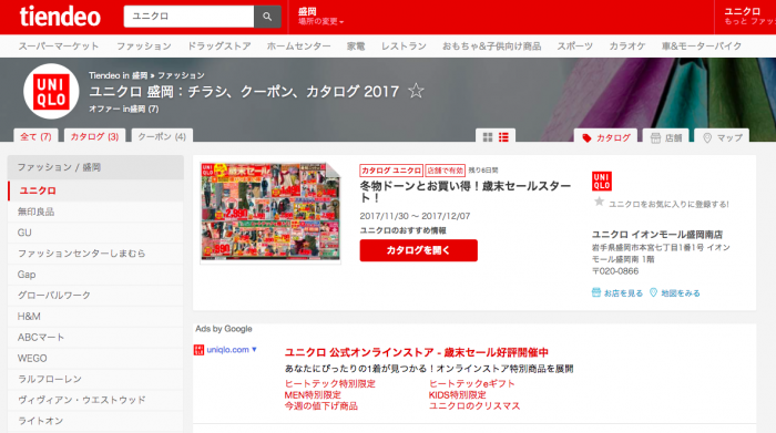 新聞を取っていない方は、ここで、今現在実際れているイベントを確認することができます。(ちなみに~12/7は歳末セールが開催中)
