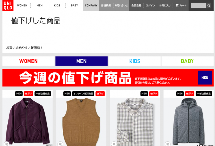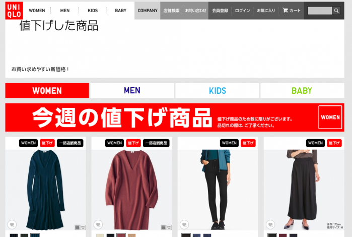 公式サイトの「今週の値下げ商品」をチェック
