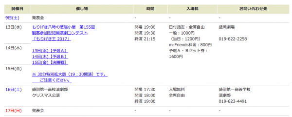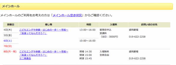 盛岡劇場のイベントスケジュールをチェックすると、頻繁に演劇のイベントが開催されているようです。